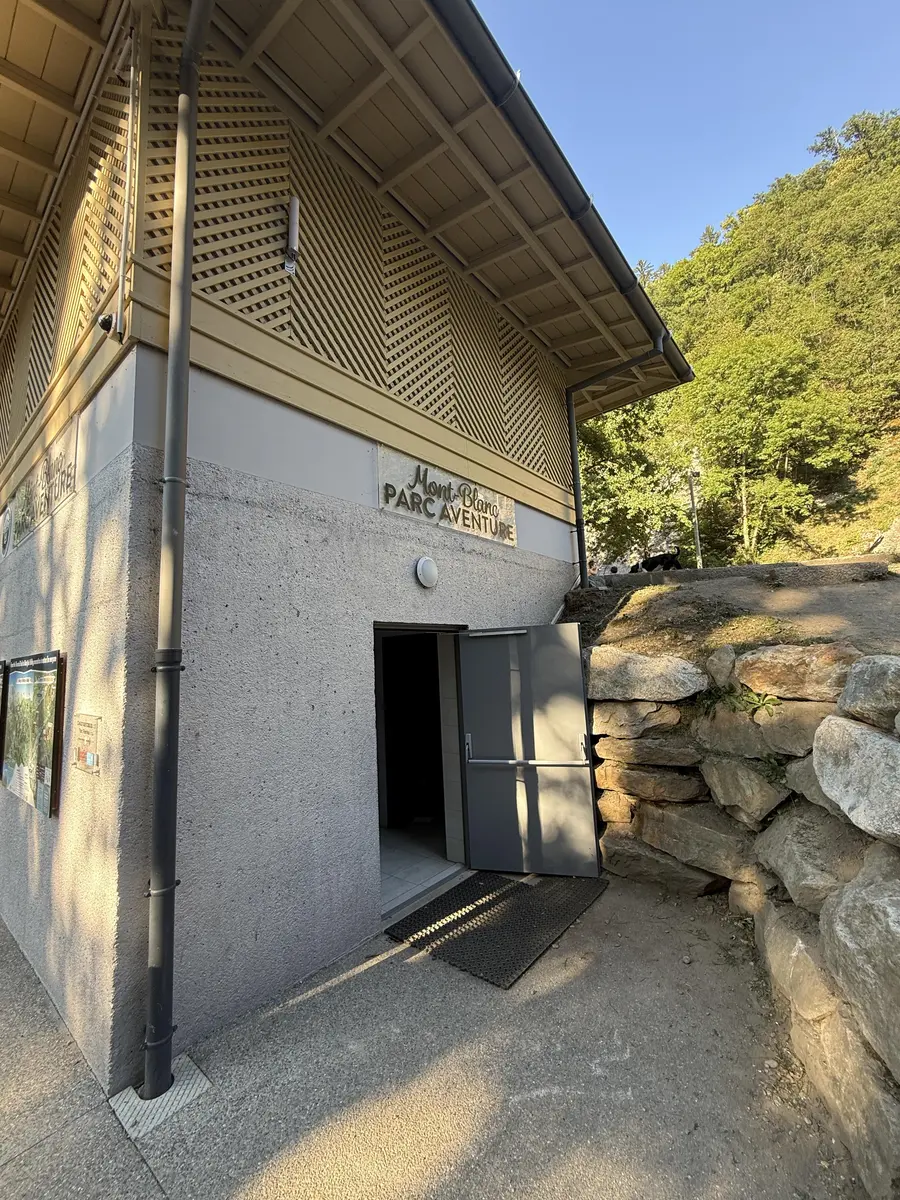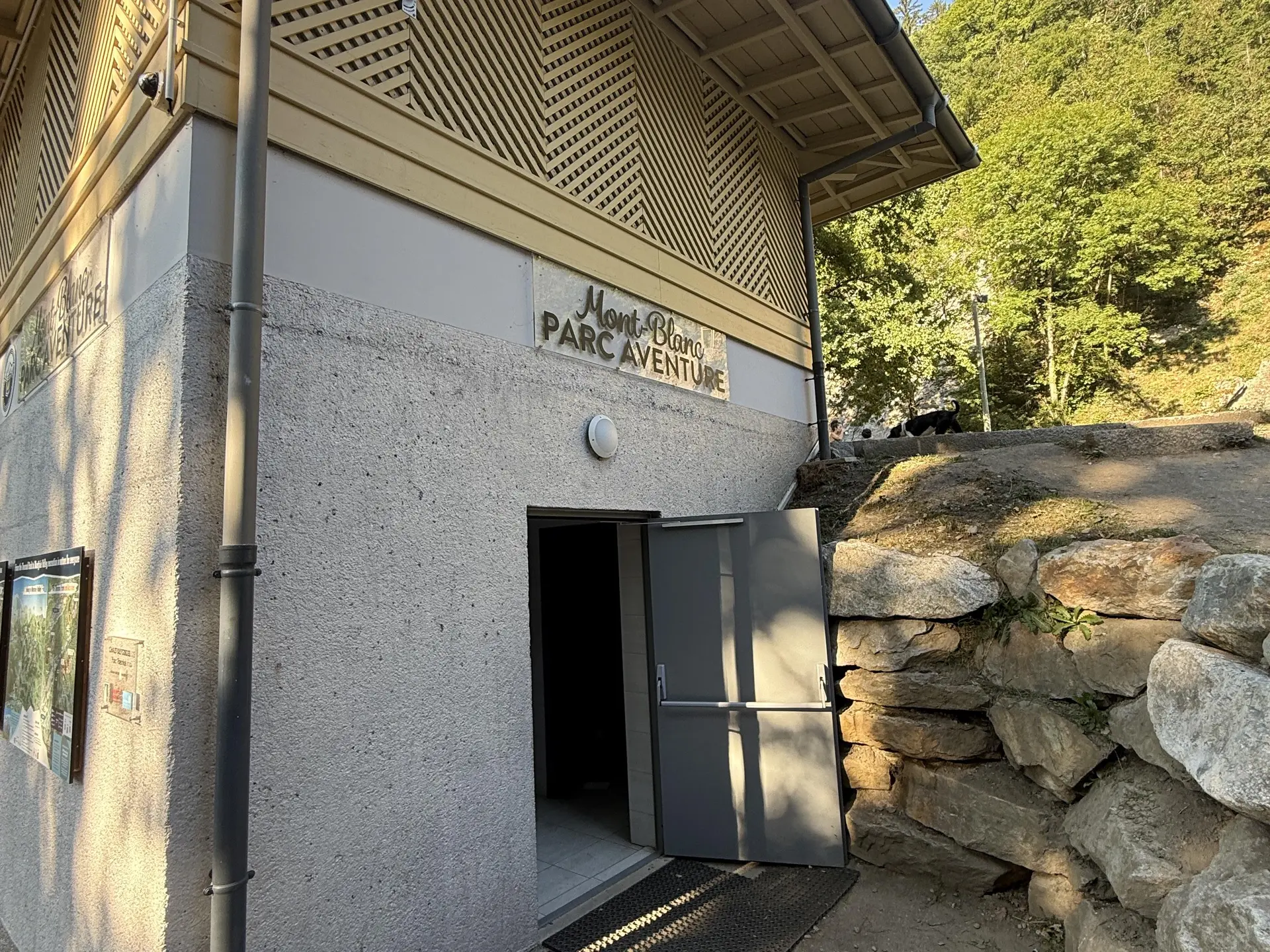 - Toilettes publiques situées en partie inférieure du chalet du Mont-Blanc Parc Aventure.