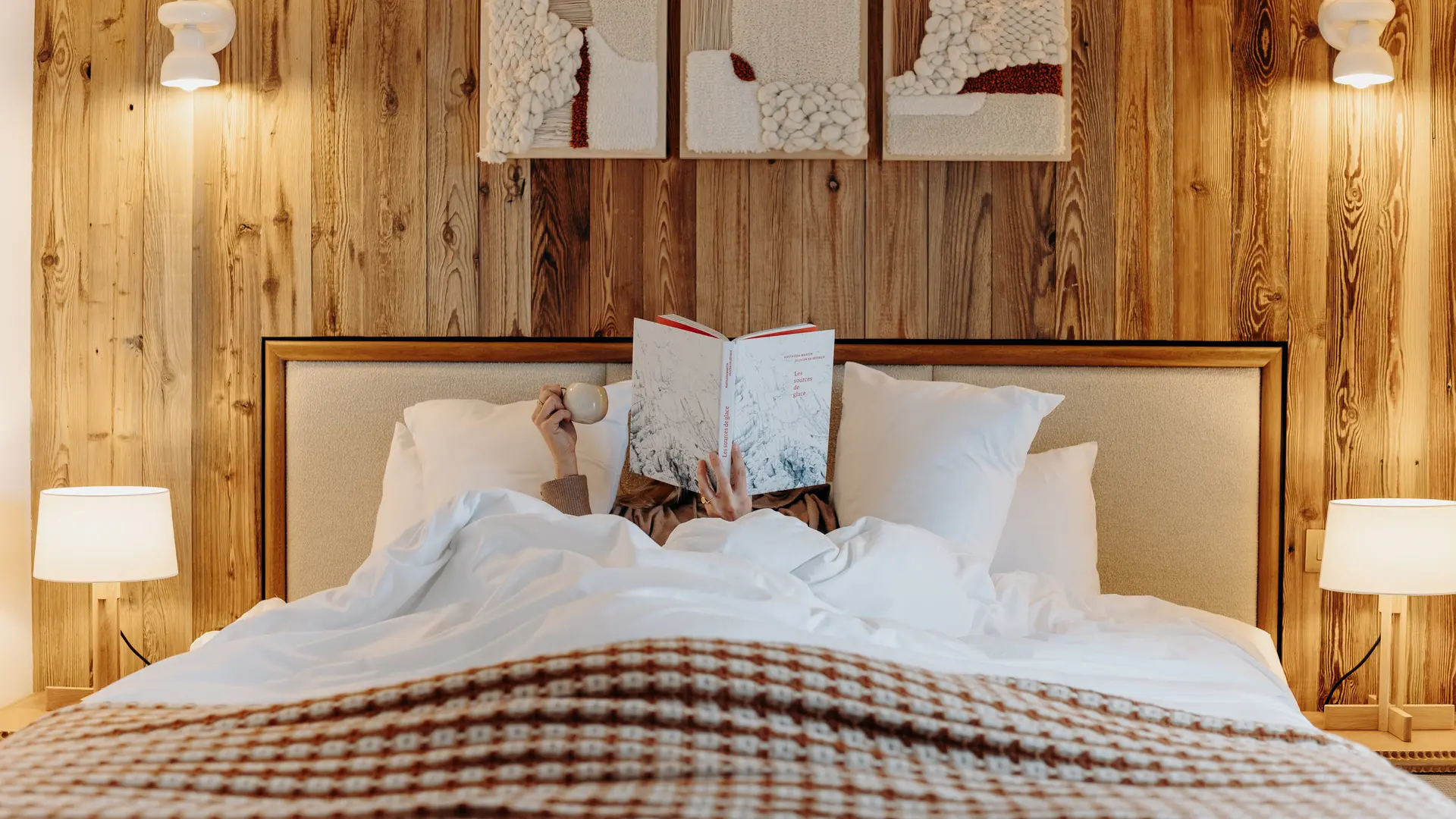 Bois massif, tissus feutrés, couleurs naturelles et objets chinés façonnent une ambiance douce et enveloppante, propice au repos et à la déconnexion. Ici, chaque détail a été pensé pour recréer une sensation de cocon au sommet, dans un esprit de maison habitée plutôt que d’hôtel traditionnel.
