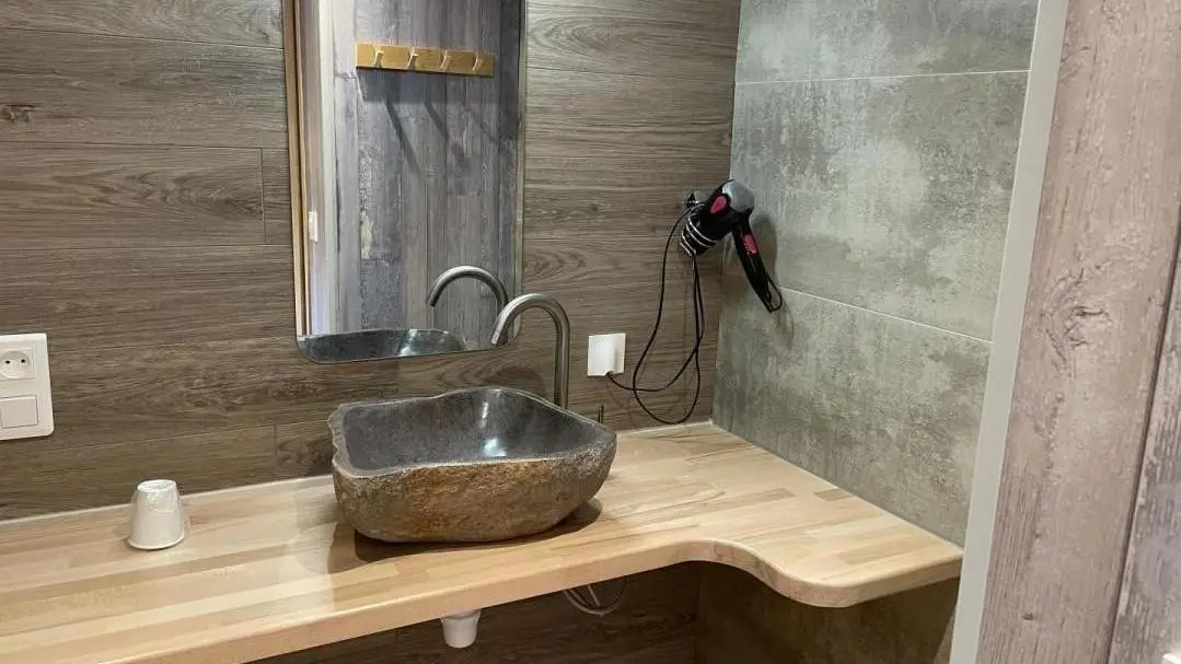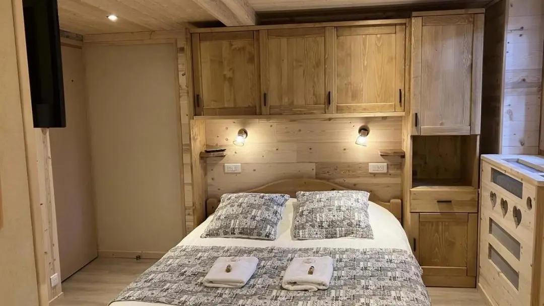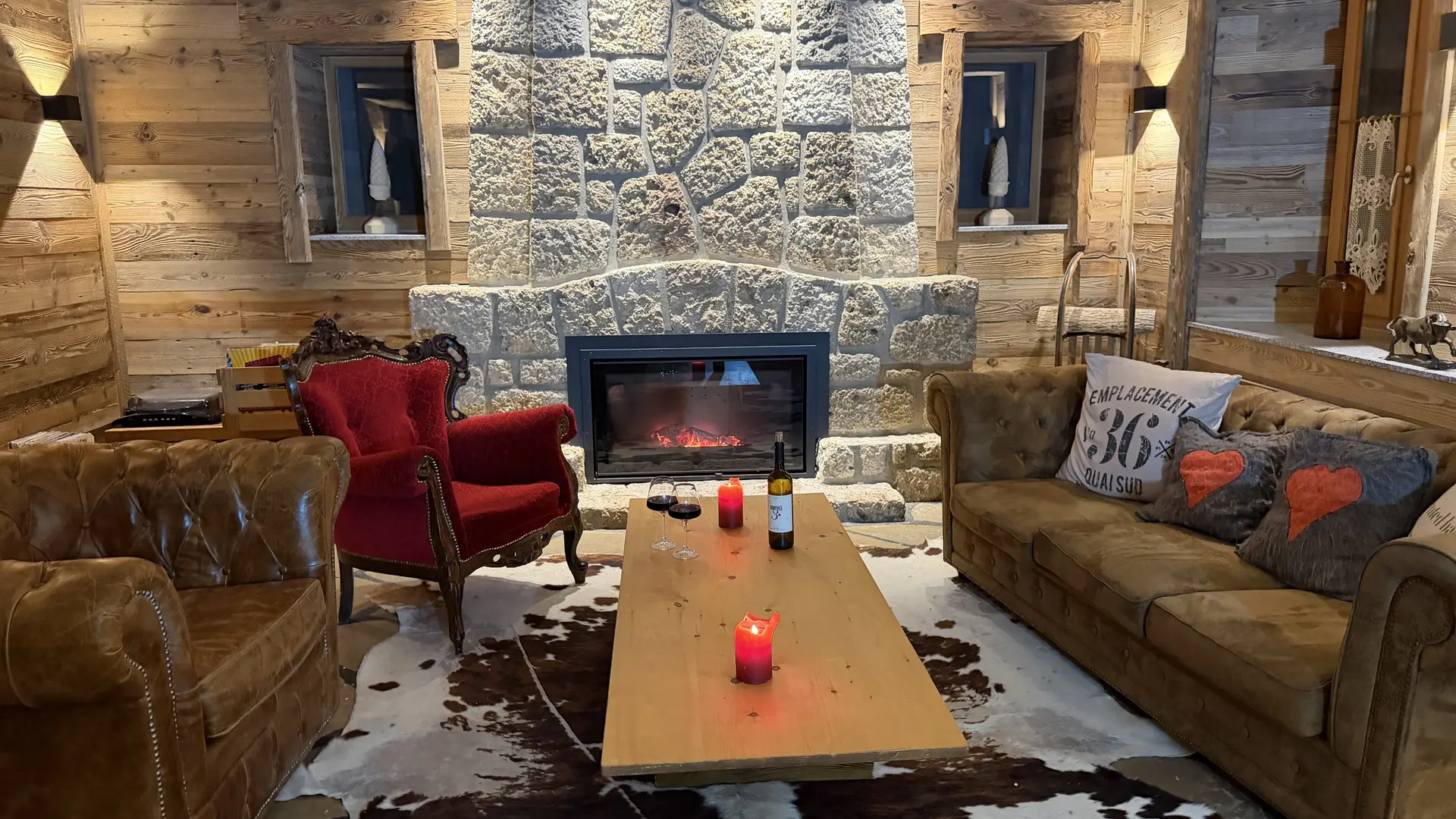L’atmosphère du chalet marie subtilement le vieux bois patiné et le granit brut, créant une élégance sobre et raffinée. Chaque détail a été pensé pour offrir un confort cocooning, tout en préservant l’authenticité alpine.