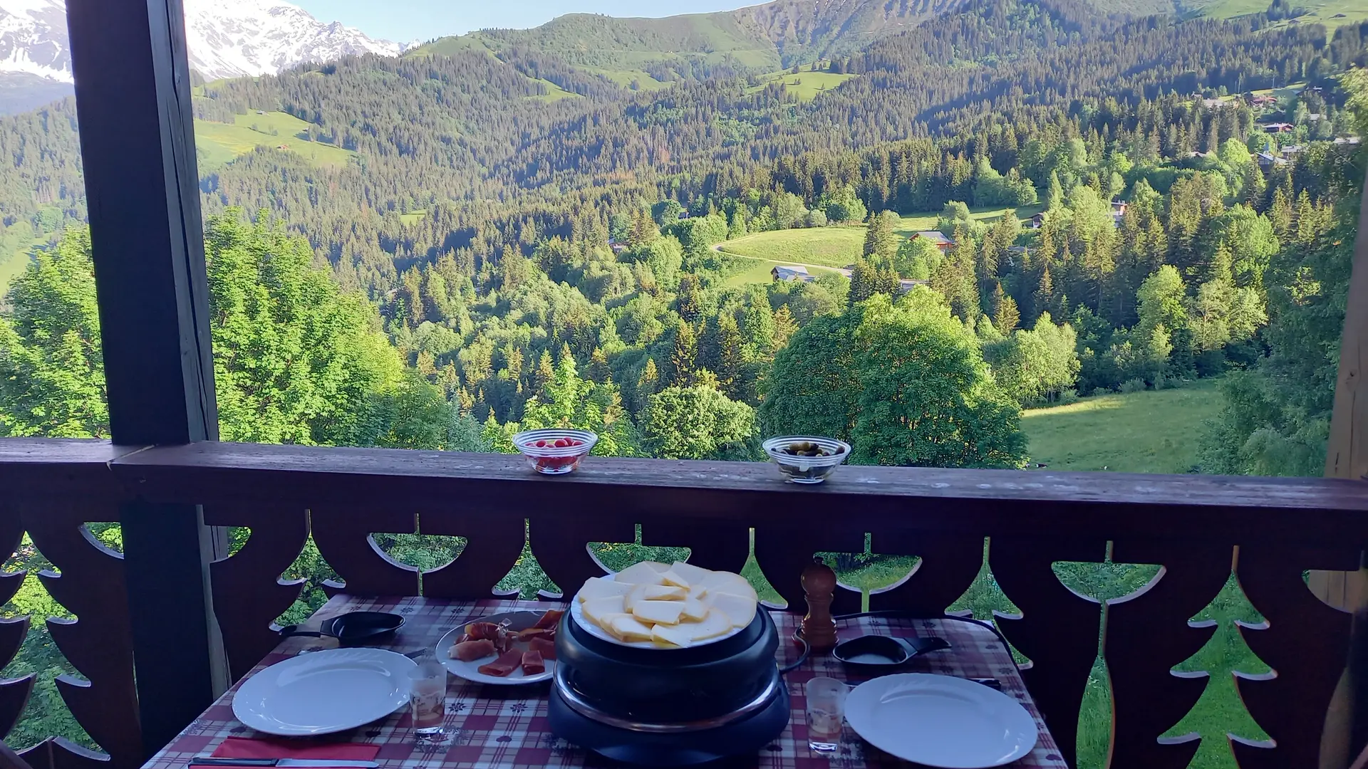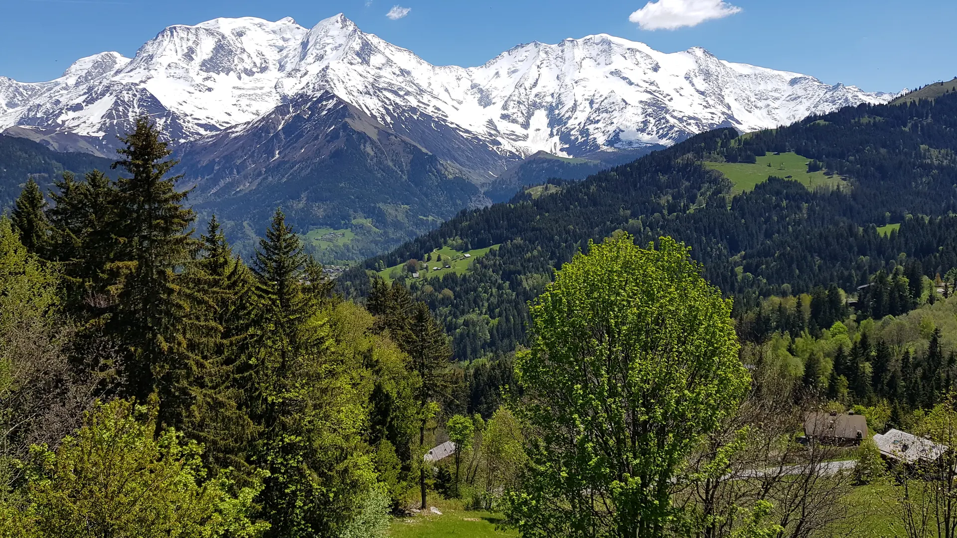 Grand balcon exposé sud avec vue magnifique sur le Mont Blanc.