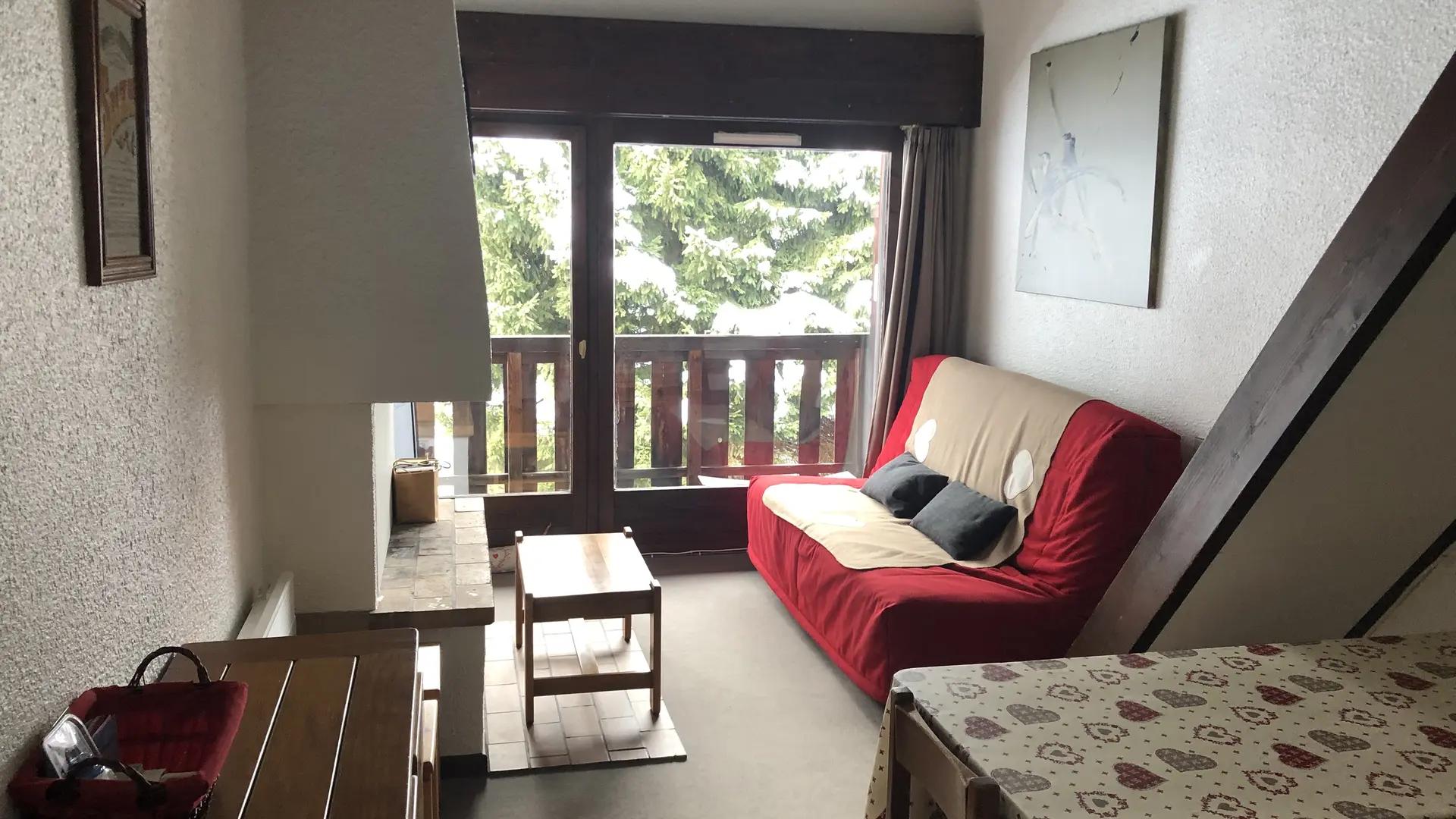 Appartement avec mezzanine dans la résidence "Les Ecraves" des chalets de Pierre Plate, situé au Bettex à proximité des pistes de ski. Piscine extérieure en été.