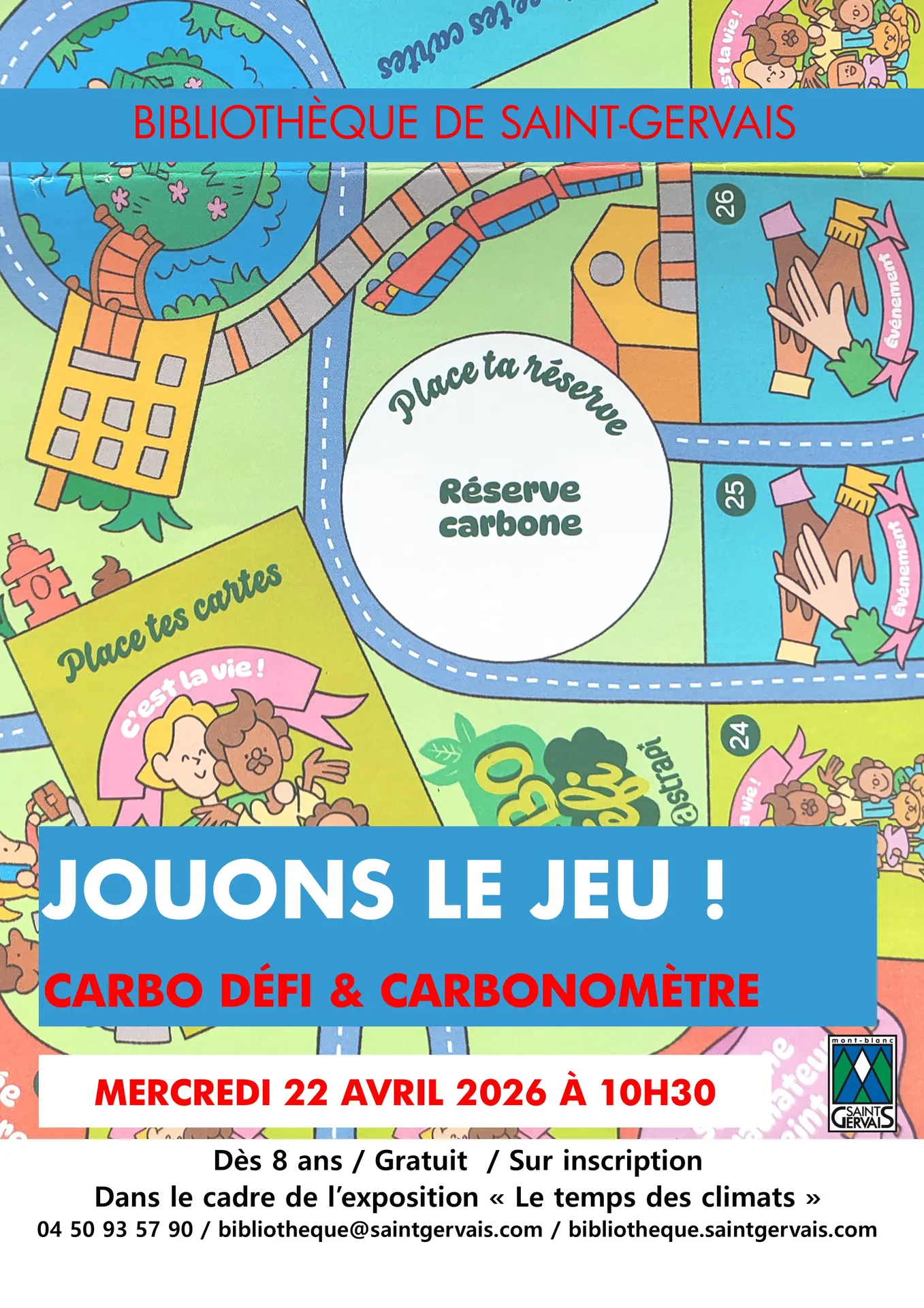 Rendez-vous à la bibliothèque pour jouer ensemble à des jeux ayant pour thématique le bouleversement climatique, le "carbo défi" et le "carbonomètre".