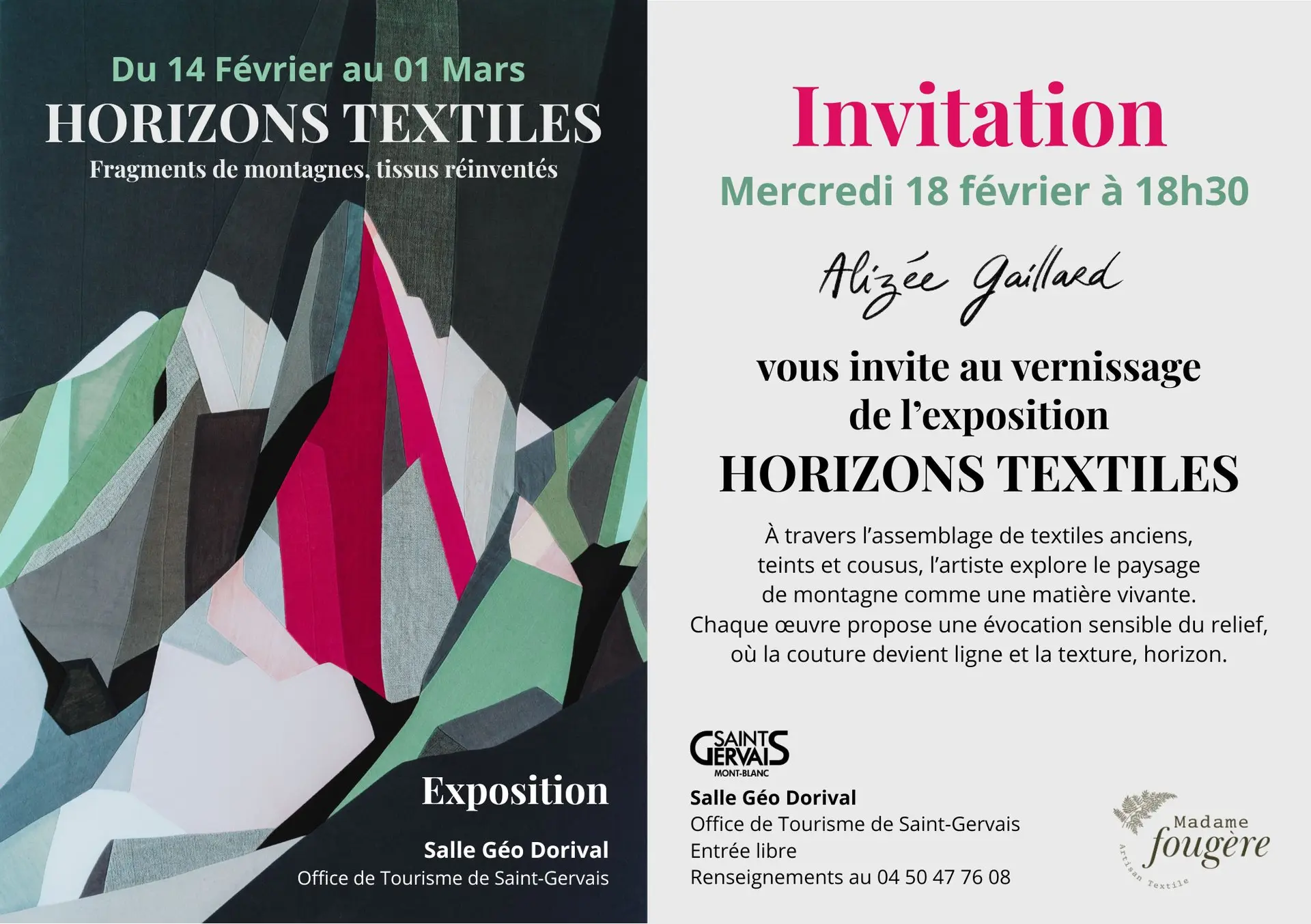Alizée Gaillard vous invite au vernissage de don exposition : HORIZONS TEXTILES.